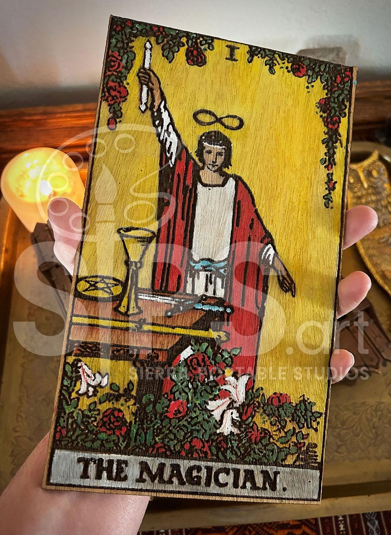 ✨ Pre-engraved Magician tarot wood panel (Rider–Waite style)