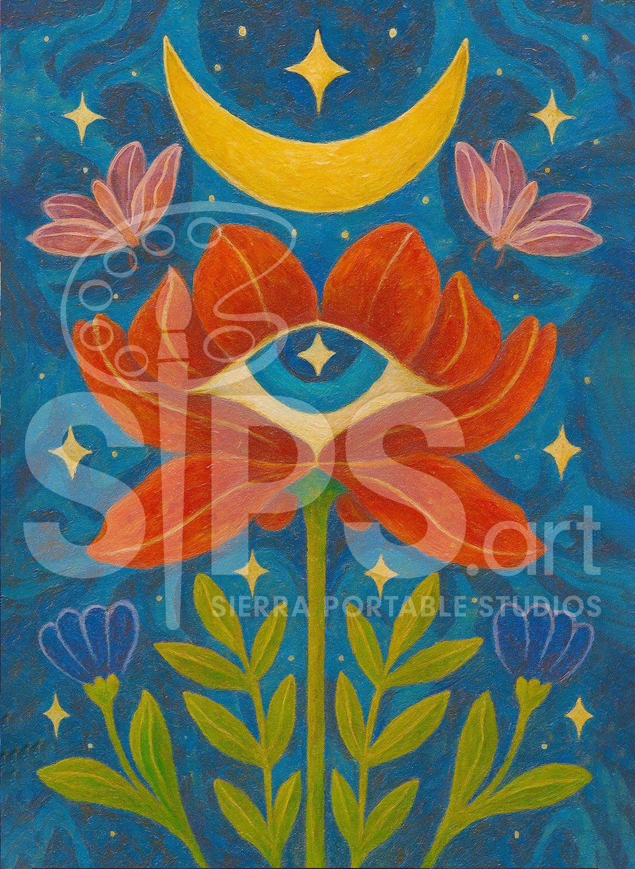 Let's paint this dreamy, Mystical Blooming Flower under a crescent moon!